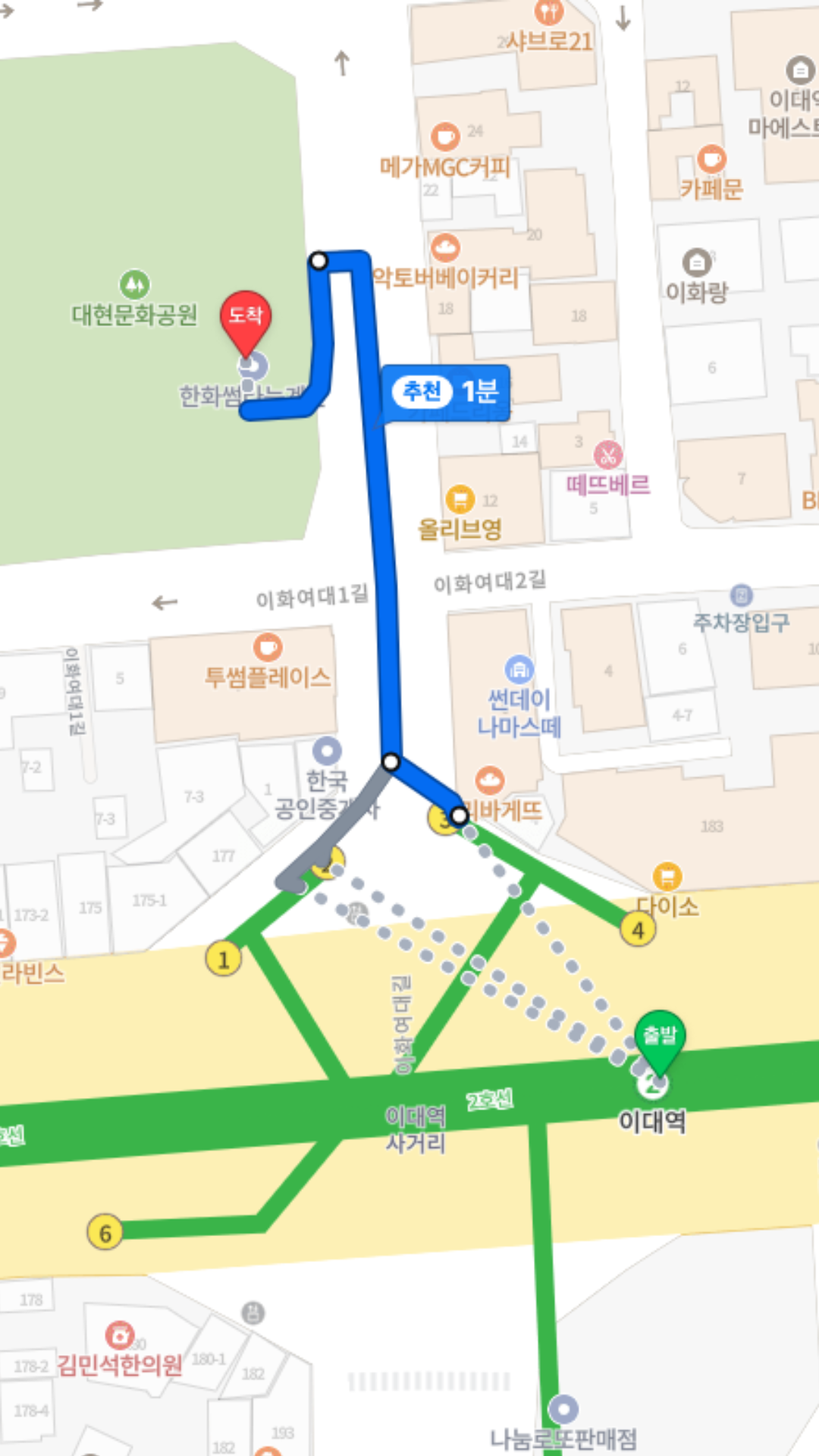 전도 장소: 서울 서대문구 대현동 대현문화공원한화썸타는계단, 이대역 3번출구에서 107m